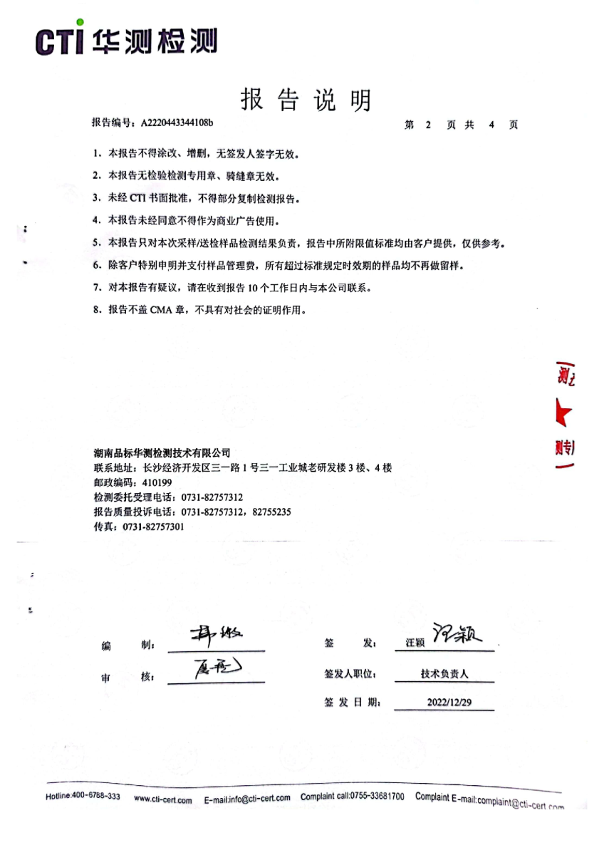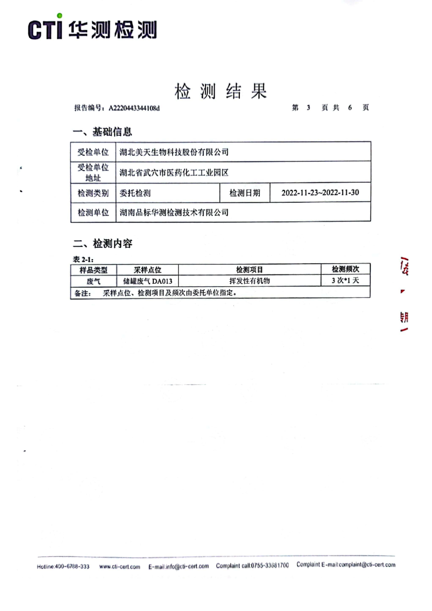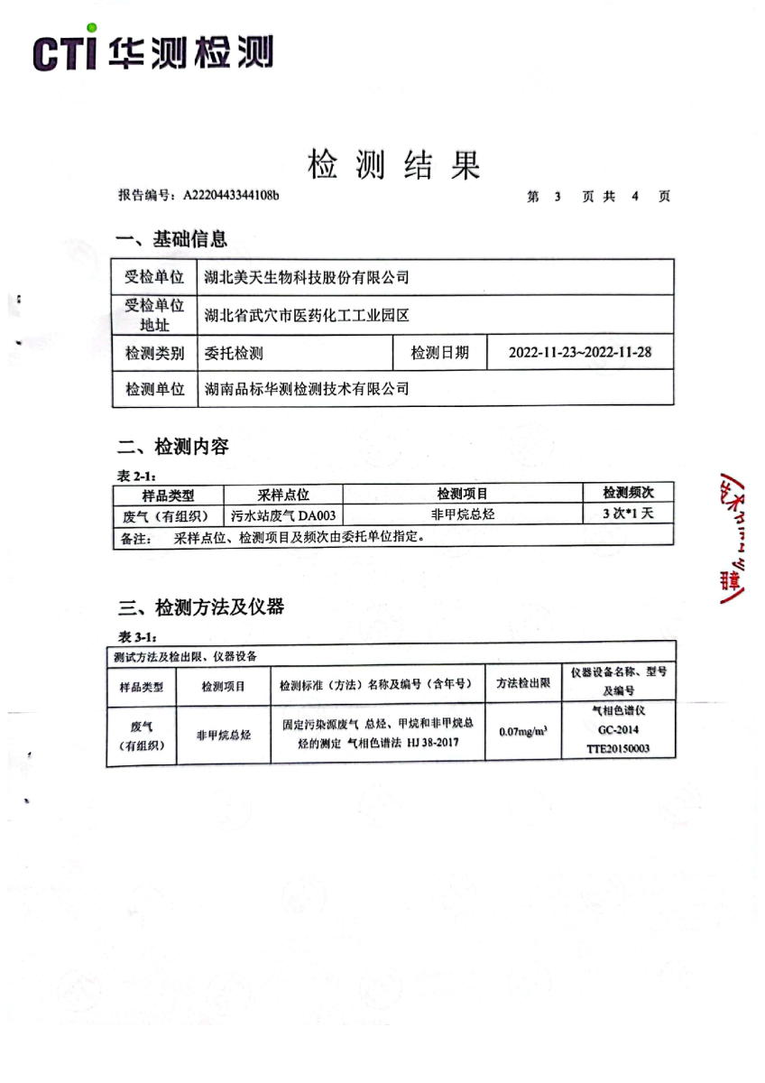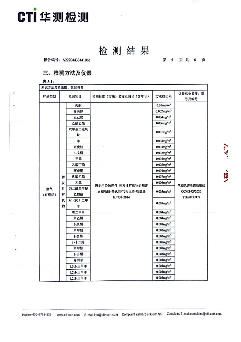 2022年第四季度,公司按照国家企业安全生产标准,对公司所排出的污染源,委托第三方进行抽样检测,详细的检测报告如下