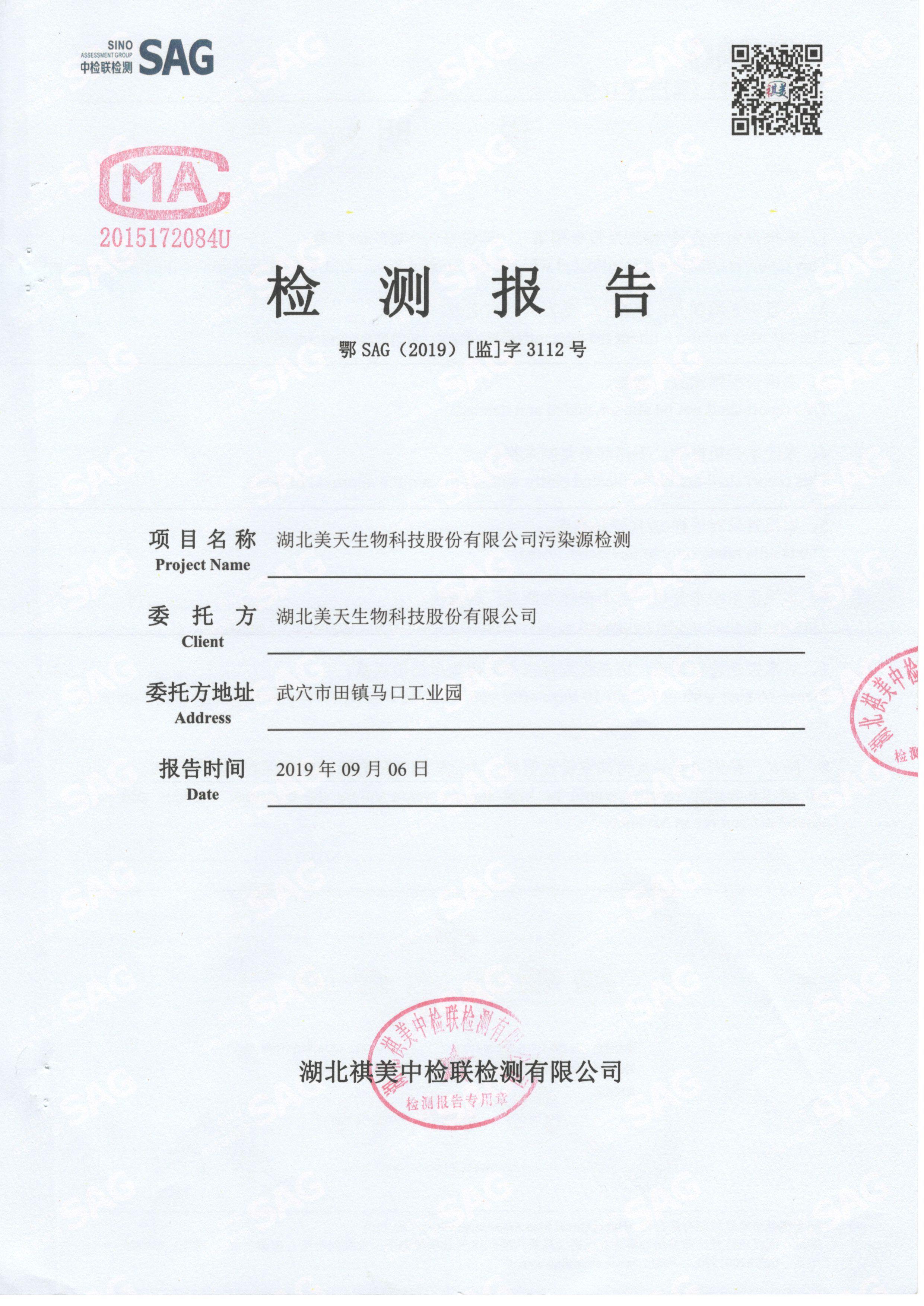 2019年第三季度,公司按照国家企业安全生产标准,对公司所排出的污染源,委托第三方进行抽样检测,详细的检测报告如下