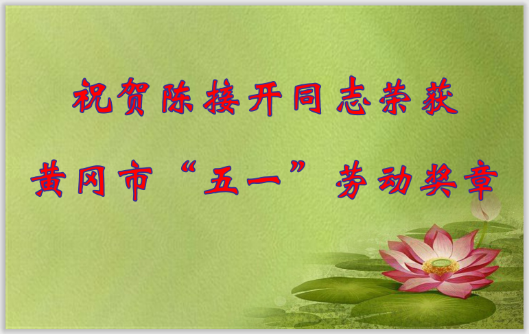 祝贺陈接开同志荣获黄冈市“五一”劳动奖章2020年11月11日上午9时许,湖北省武穴市总工会在公司会议室授予陈接开同志荣获黄冈市“五一”劳动奖章,此奖章由黄冈总...